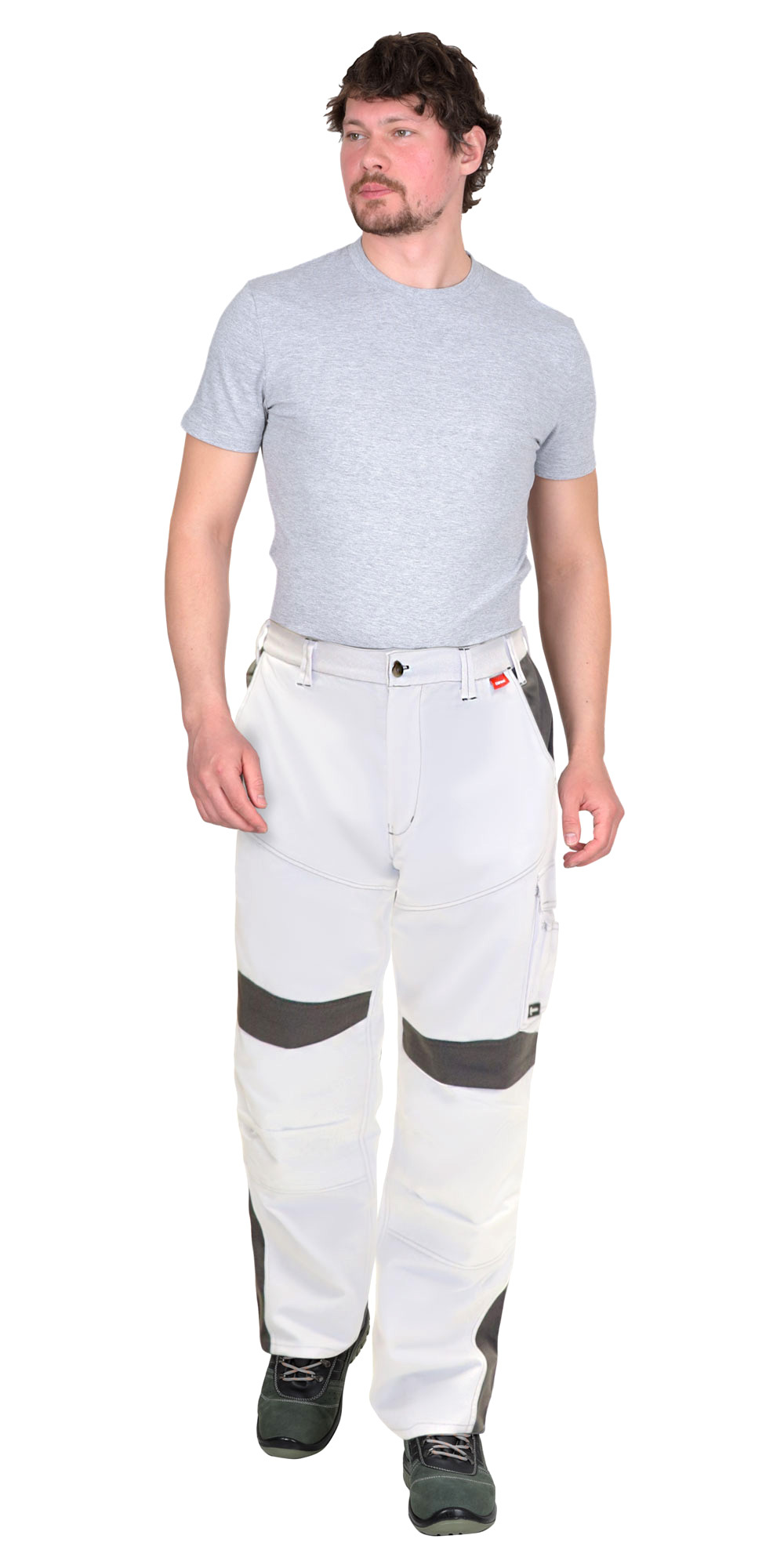 Брюки прямые с застёжкой спереди - гульфик с молнией, с отрезным поясом, с карманами спереди, сзади и на боковых швах, с объёмными наколенниками из плотной, полиэфирной, непромокаемой ткани с верхним входом для амортизационного вкладыша.