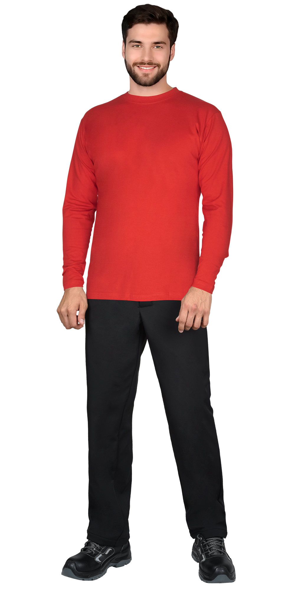 Трикотажное полотно: 100% х/б, плотность 160 г/кв.м. Футболка с длинными рукавами, с круглой горловиной.