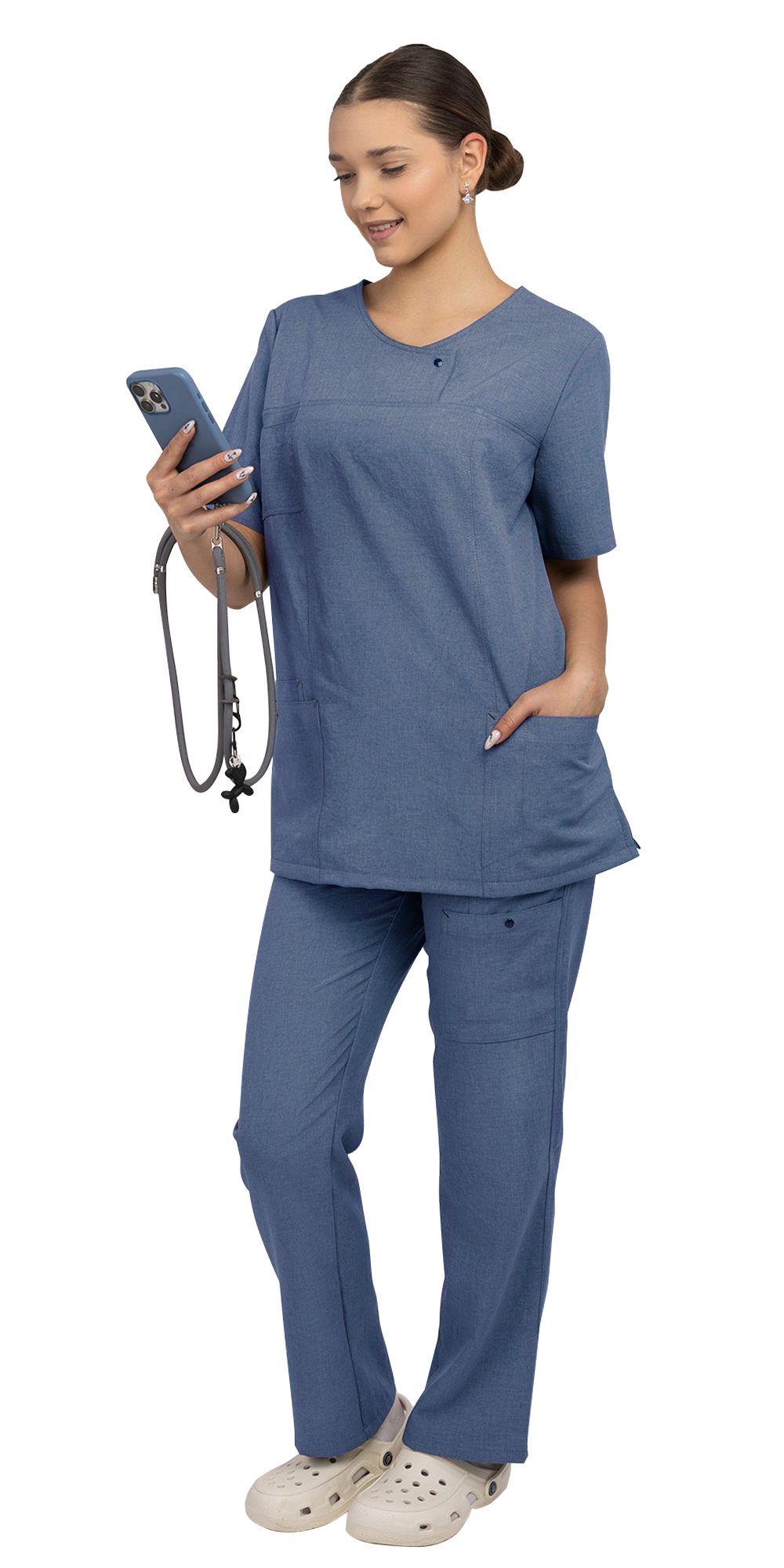 Костюм состоит из блузы и брюк, предназначен для медицинских работников.