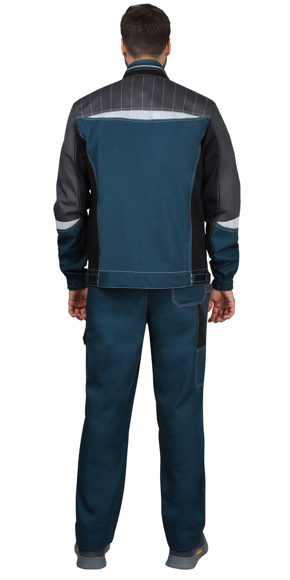 Куртка комбинированная трёхцветная, укороченная, прямого силуэта, с воротником стойка, центральной застёжкой на молнию, прикрытой напуском от горловины до низа, отрезными бочками, верхними накладными карманами с клапанами, нижними прорезными карманами на молнию. Объём куртки внизу регулируется при помощи хлястиков, пластиковой рамки и липучки. Рукава втачные, с отрезными манжетами, с частичной стяжкой на резинку. В куртке предусмотрено крепление бейджа.