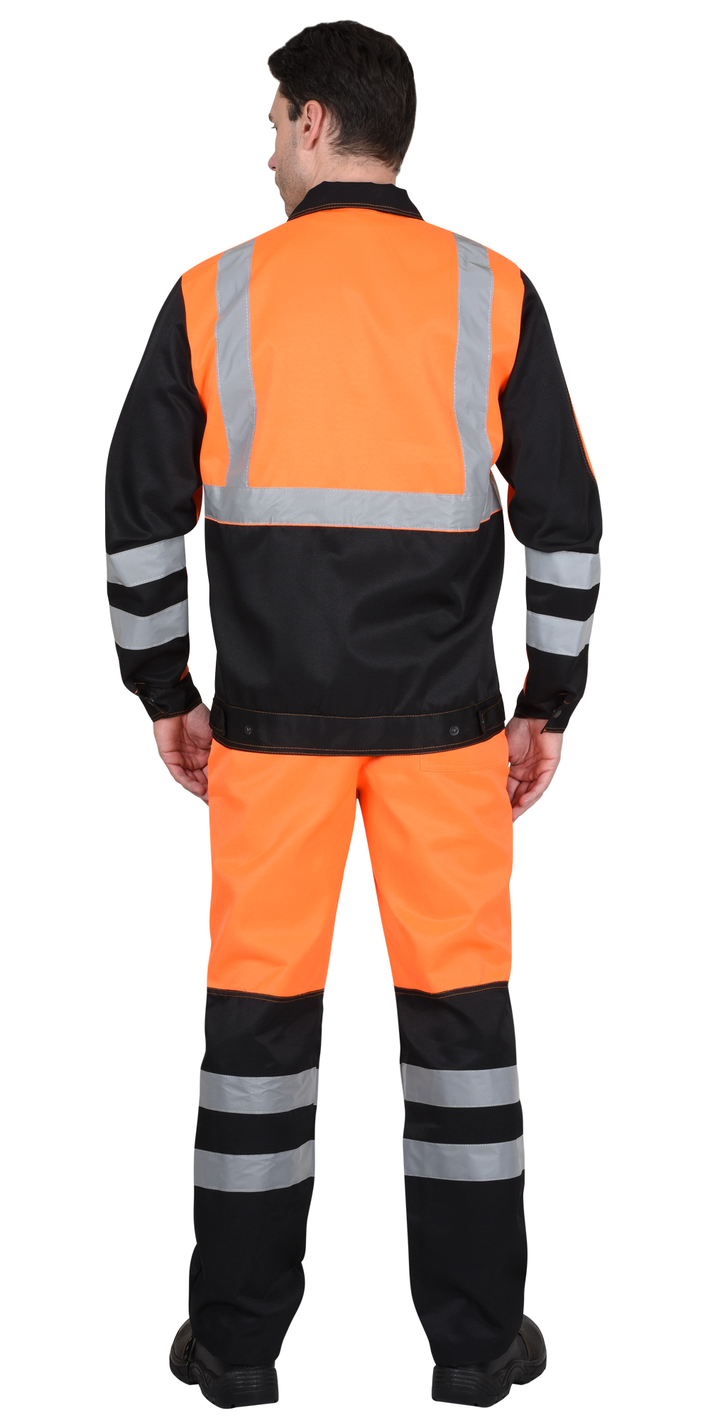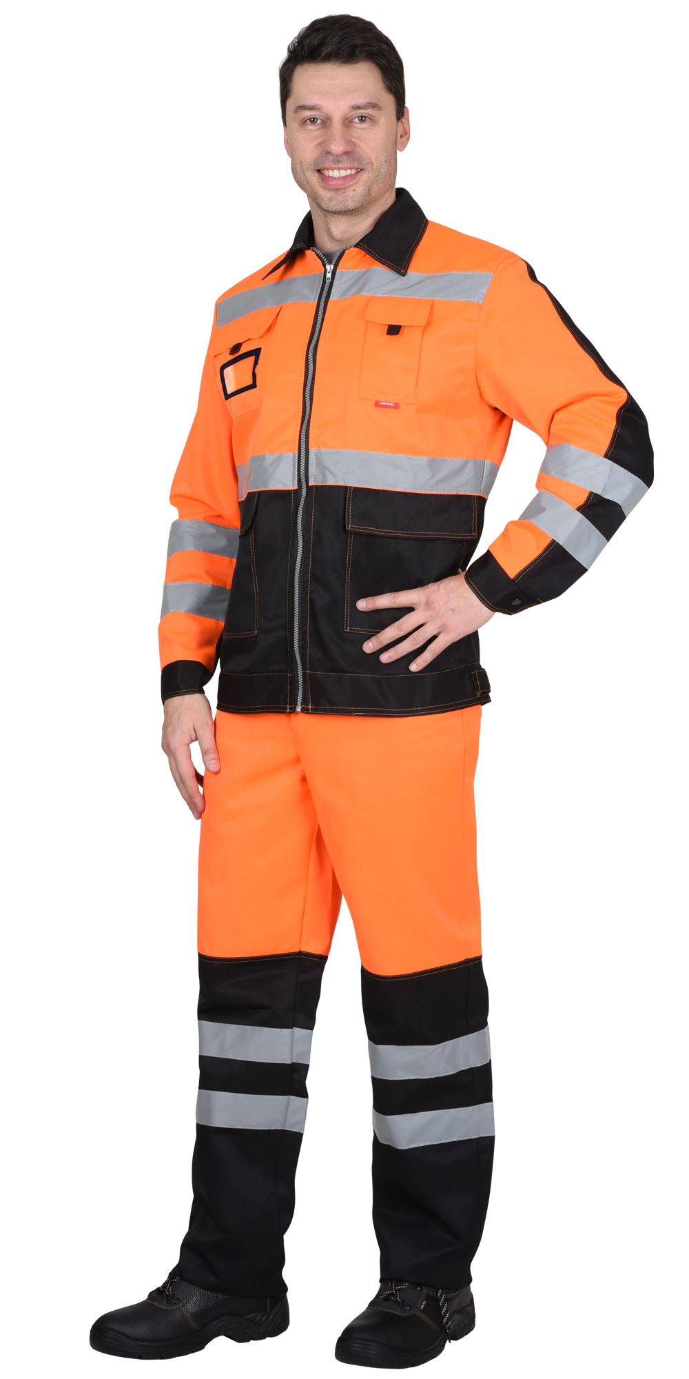 Костюм летний двухцветный состоит из куртки и брюк. На куртке и брюках лента светоотражающая шириной 50 мм, для обеспечения сигнальной видимости. Костюм 3 класса сигнальной защиты.