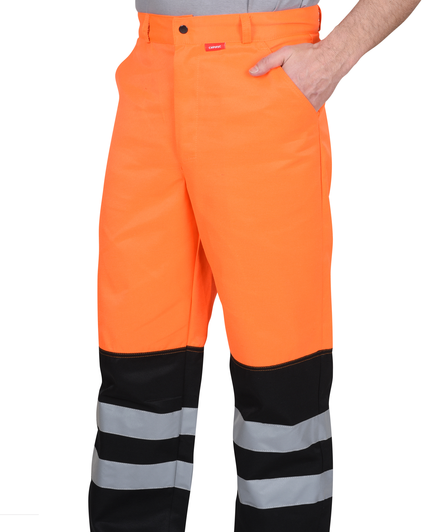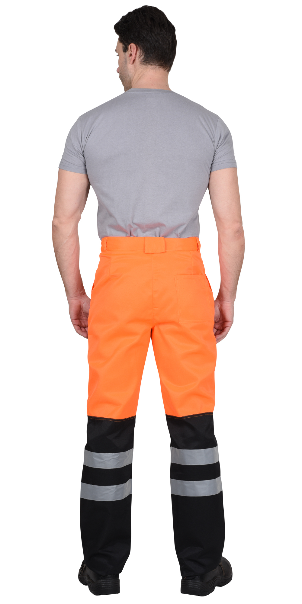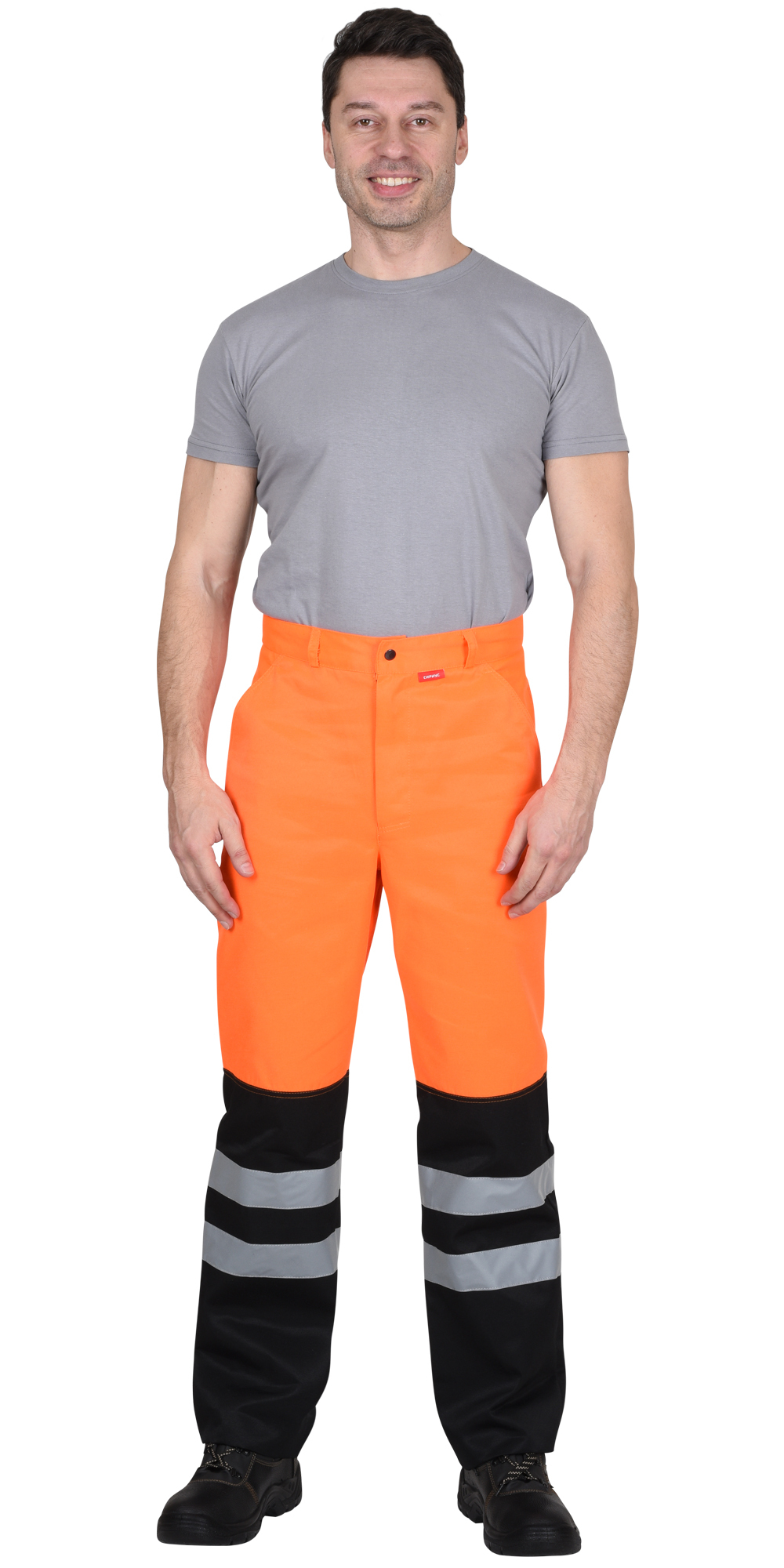 Брюки с поясом, с застёжкой спереди – гульфик с молнией, передними боковыми карманами и одним задним накладным карманом с правой стороны. Ниже колен на брюках лента светоотражающая шириной 50 мм в 2 ряда
