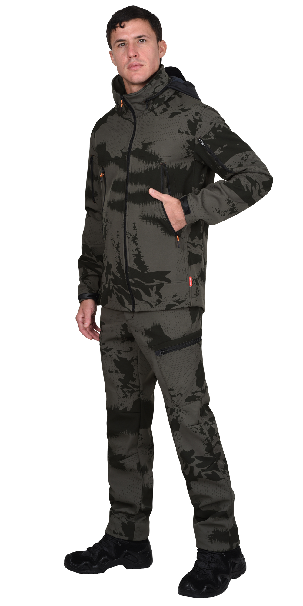 Материал основой: софтшелл с мембраной, с ВО, плотность 325 г/м², состав 92% ПЭ, 8% СП, цвет: КМФ Урбан.