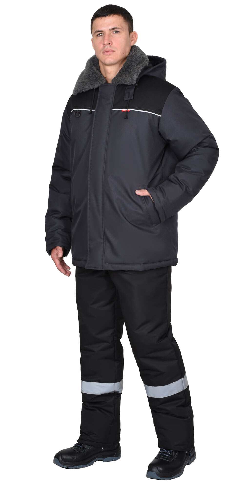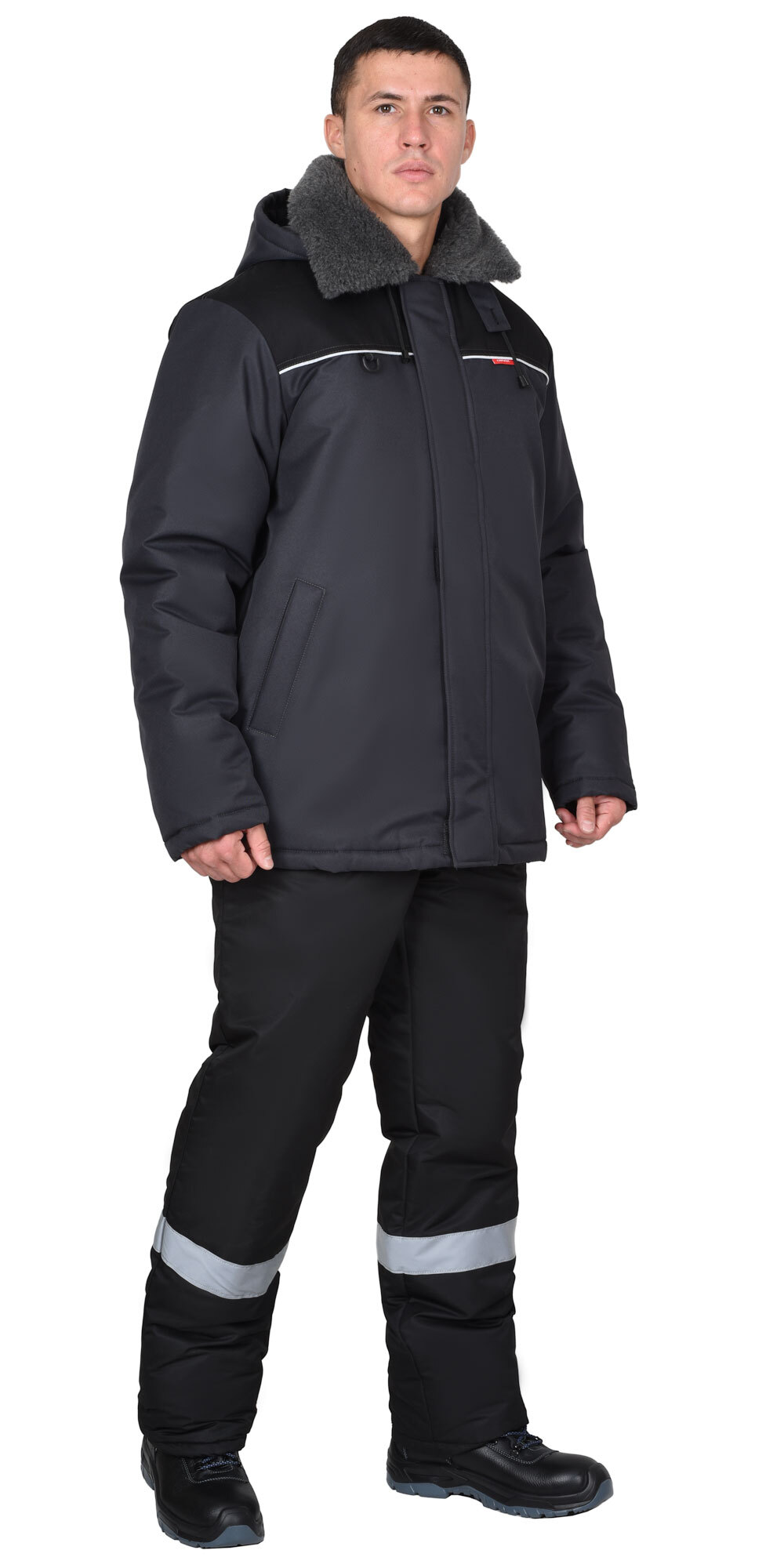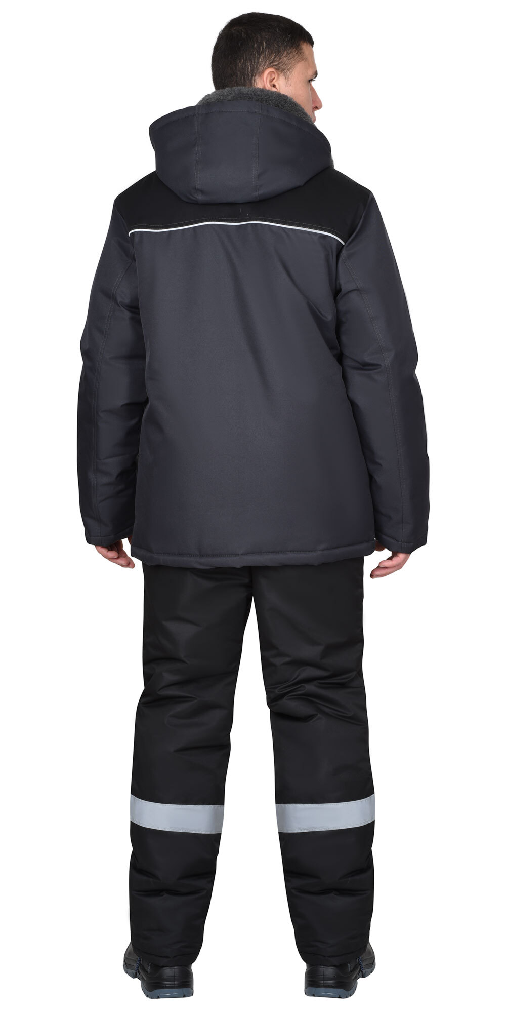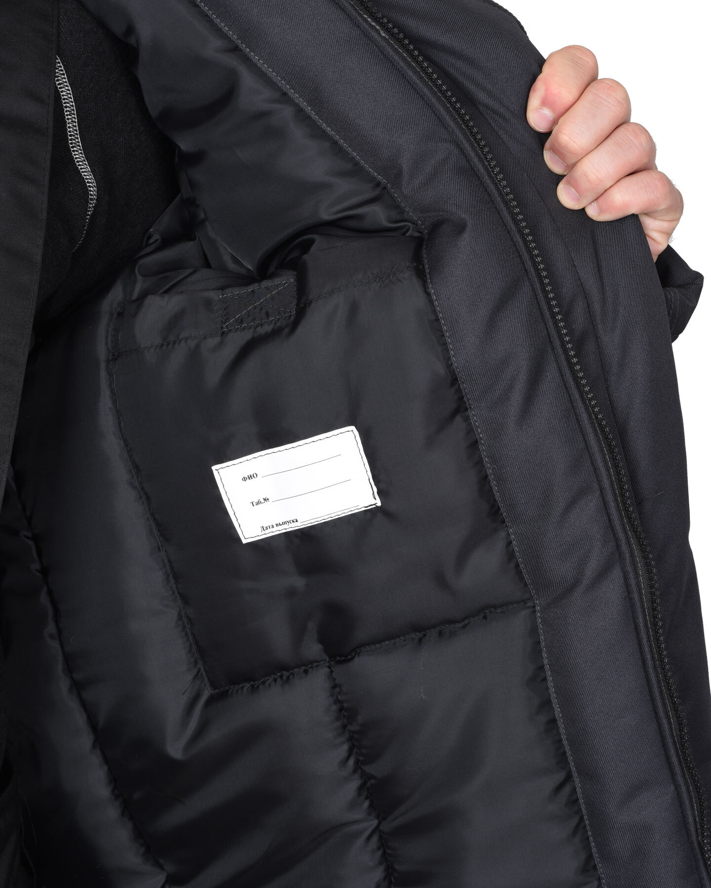 Куртка прямого силуэта, удлинённая, с креплением для бейджа, с меховым отложным воротником, с центральной застёжкой на молнию от горловины до низа, накрытую ветрозащитным клапаном с потайными липучками. Куртка с нижними прорезными карманами с листочками. Рукава втачные с внутренними трикотажными манжетами. Куртка со съемным капюшоном, который пристегивается к горловине куртки при помощи пуговиц. Подкладка куртки утепленная, с левой стороны подкладки накладной карман с верхним горизонтальным входом, застегивается на липучку. В куртке предусмотрен СВ-кант, для обеспечения сигнальной видимости.