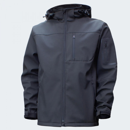 Куртка прямого силуэта; с отрезными кокетками; с центральной застежкой на молнию, с капюшоном; с нагрудным карманом и нижними карманами в рельефных швах.